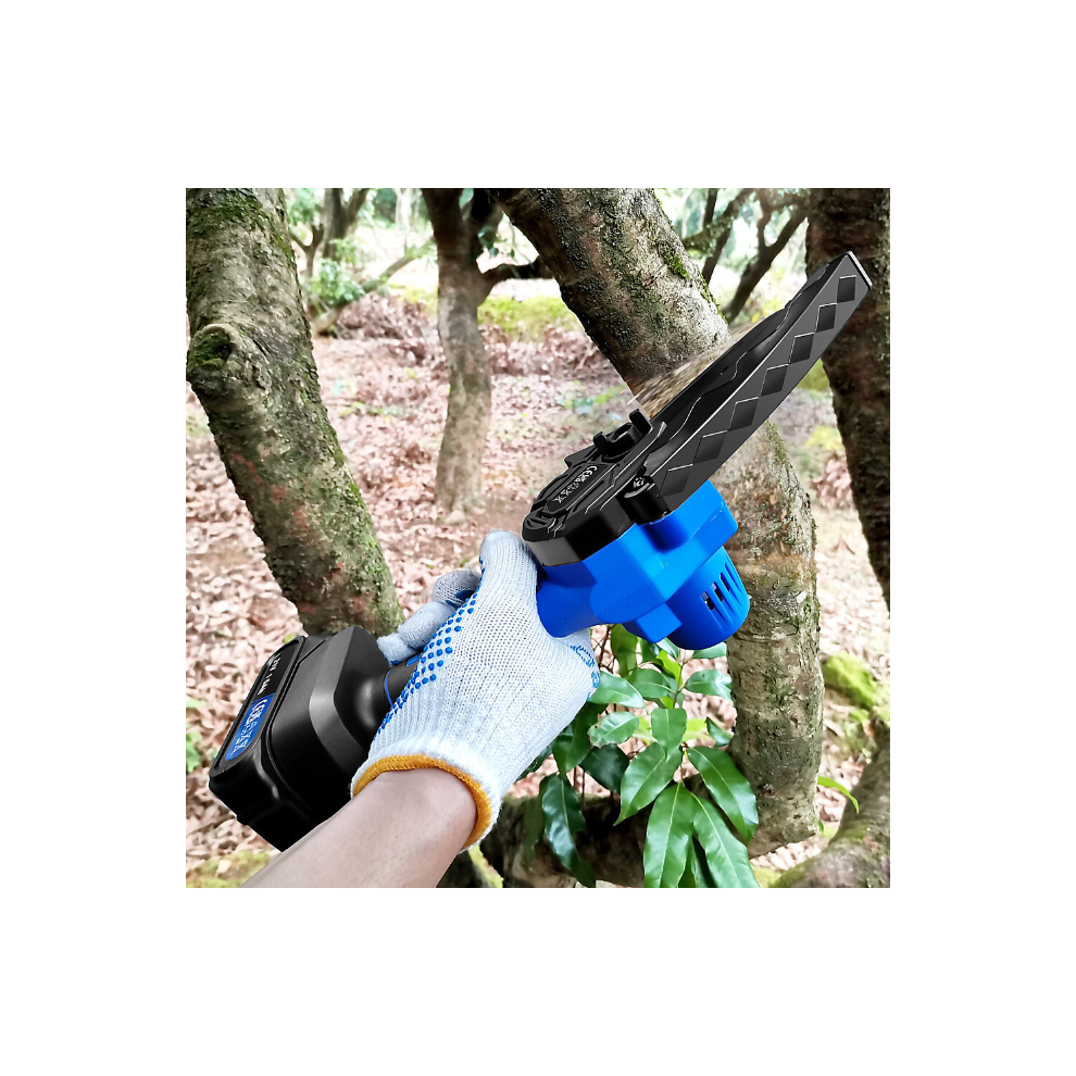 (Blue, Without Battery) 220V Mini Chainsaw Cordless Electric Saw Hand-held Rechargeable Electric Logging Saw With Brushless Motor