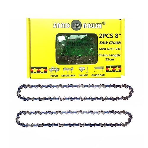 SAND DR BRUSH Mini Chainsaw Chain Replacement 4 Inch 2pcs, for 4 in Chain Guide Bar, 0.043"(1.1mm) Gauge, 1/4" LP, 28DL, Fits All Brands Battery Electric Chainsaw Mini Handheld Rechargeable Saw Wood