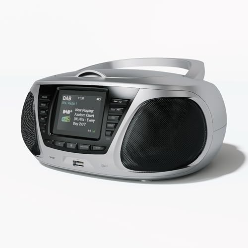 Portable CD Player with DAB/DAB+/FM Digital Radio | Bluetooth & USB MP3 Player | Large Display | Battery & Mains Powered (6x”C”) | Perfect for Home, Office or Outdoors | AZATOM Zenith Z4 (Silver)