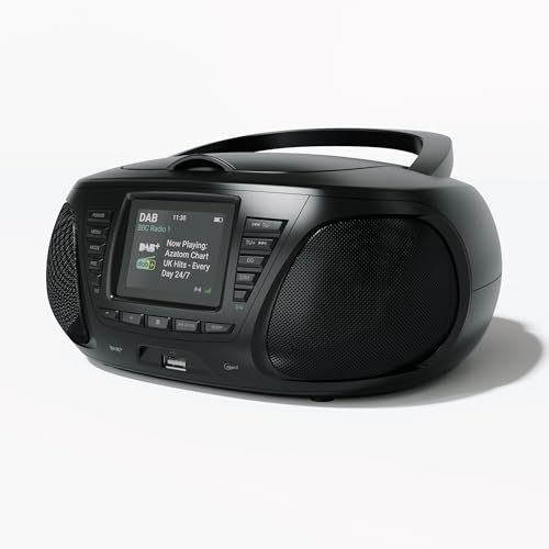 Portable CD Player with DAB/DAB+/FM Digital Radio | Bluetooth & USB MP3 Player | Large Display | Battery & Mains Powered (6x”C”) | Perfect for Home, Office or Outdoors | AZATOM Zenith Z4 (Black)