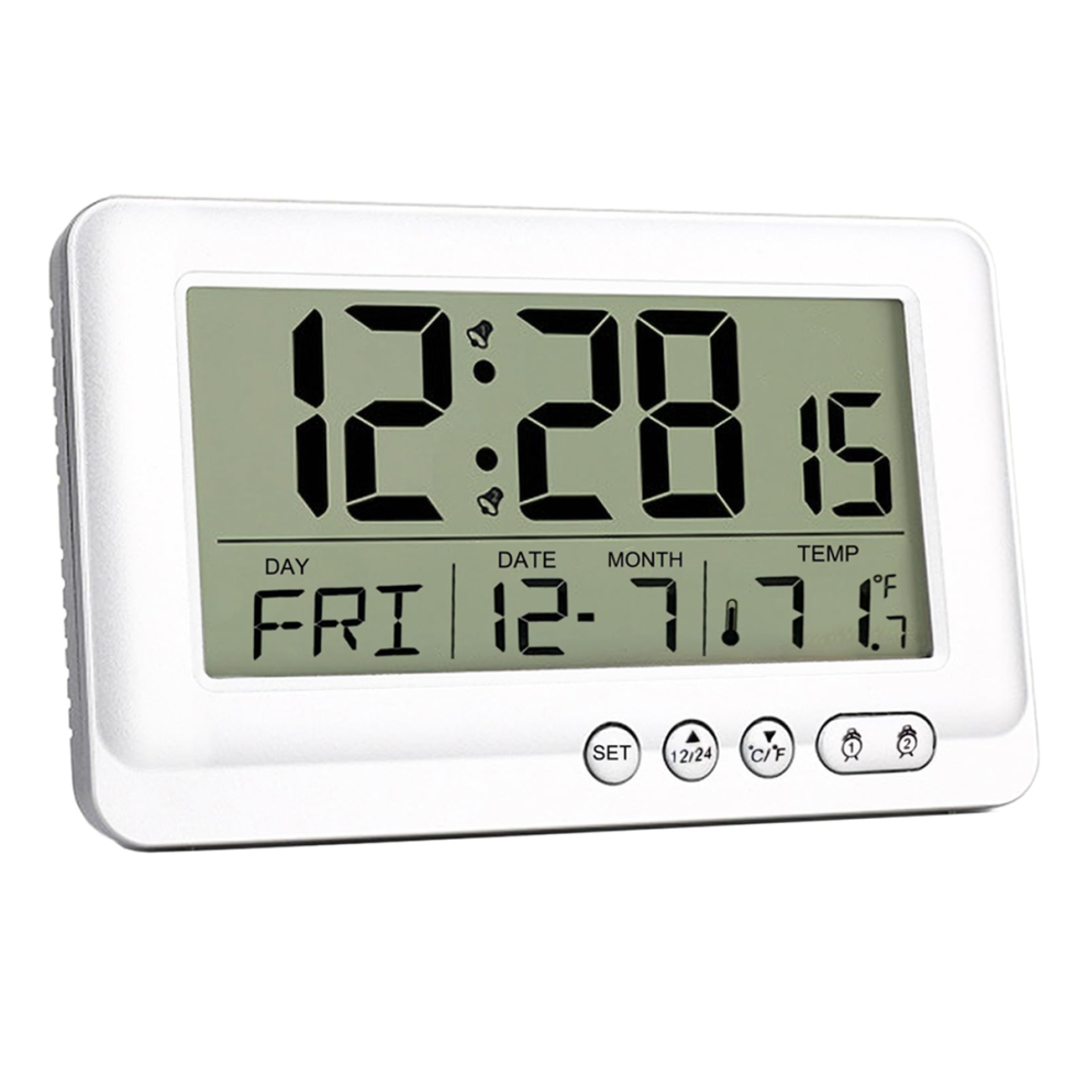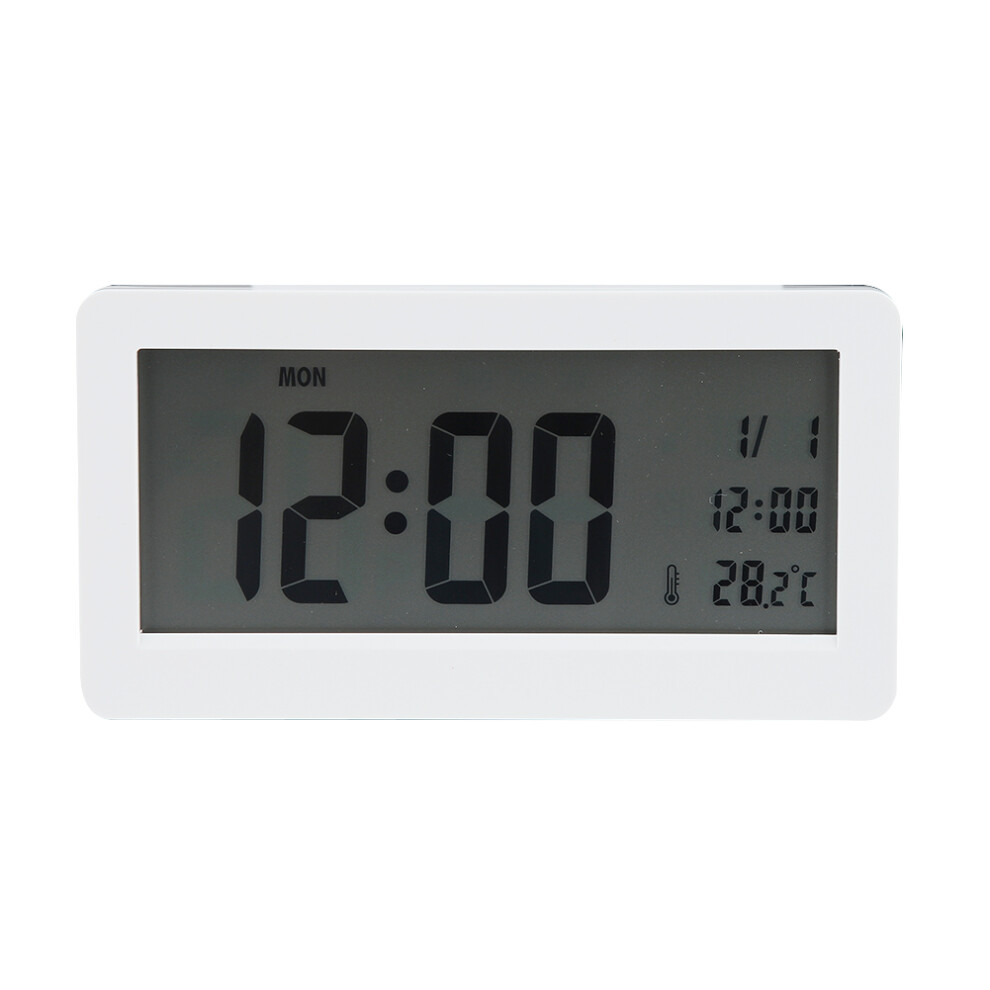 (White) Battery Operated Digital Deck Alarm Clock LCD Display Backlight Calendar Modern