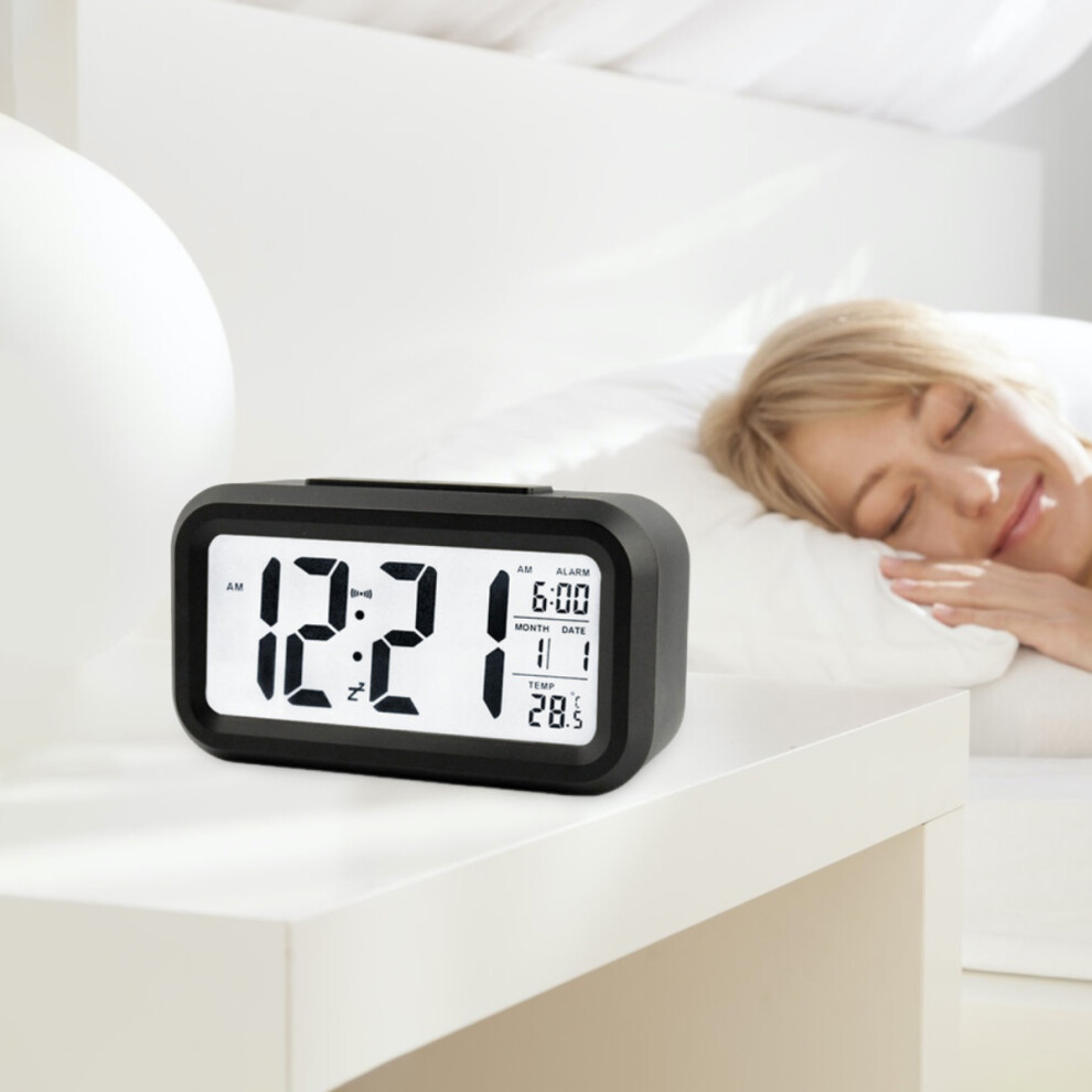Smart Electronic Clock with Battery Operated, Digital Alarm Clock Featuring Backlight and Snooze Function, LCD Display Digital Clock with Indoor Tempe