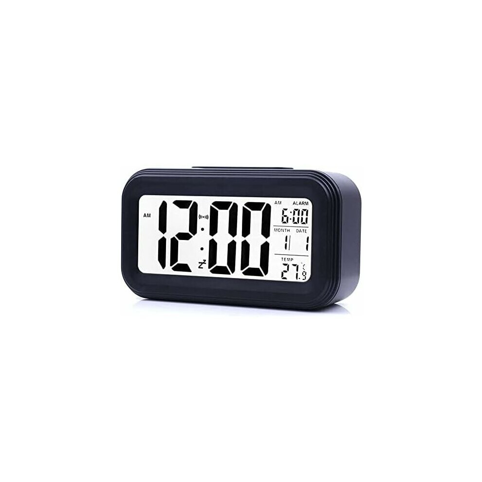 Battery Operated Wooden LCD Digital Alarm Clock with Smart Sensor Night Light, Snooze for Bedrooms
