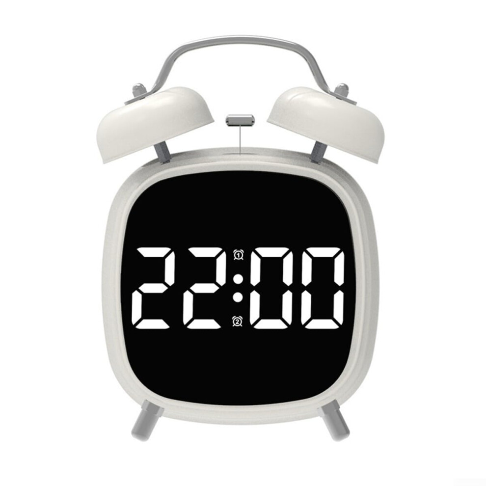 USB Charging and Battery Operated Digital Twin Bell Alarm Clock White B Compact Tabletop Clock