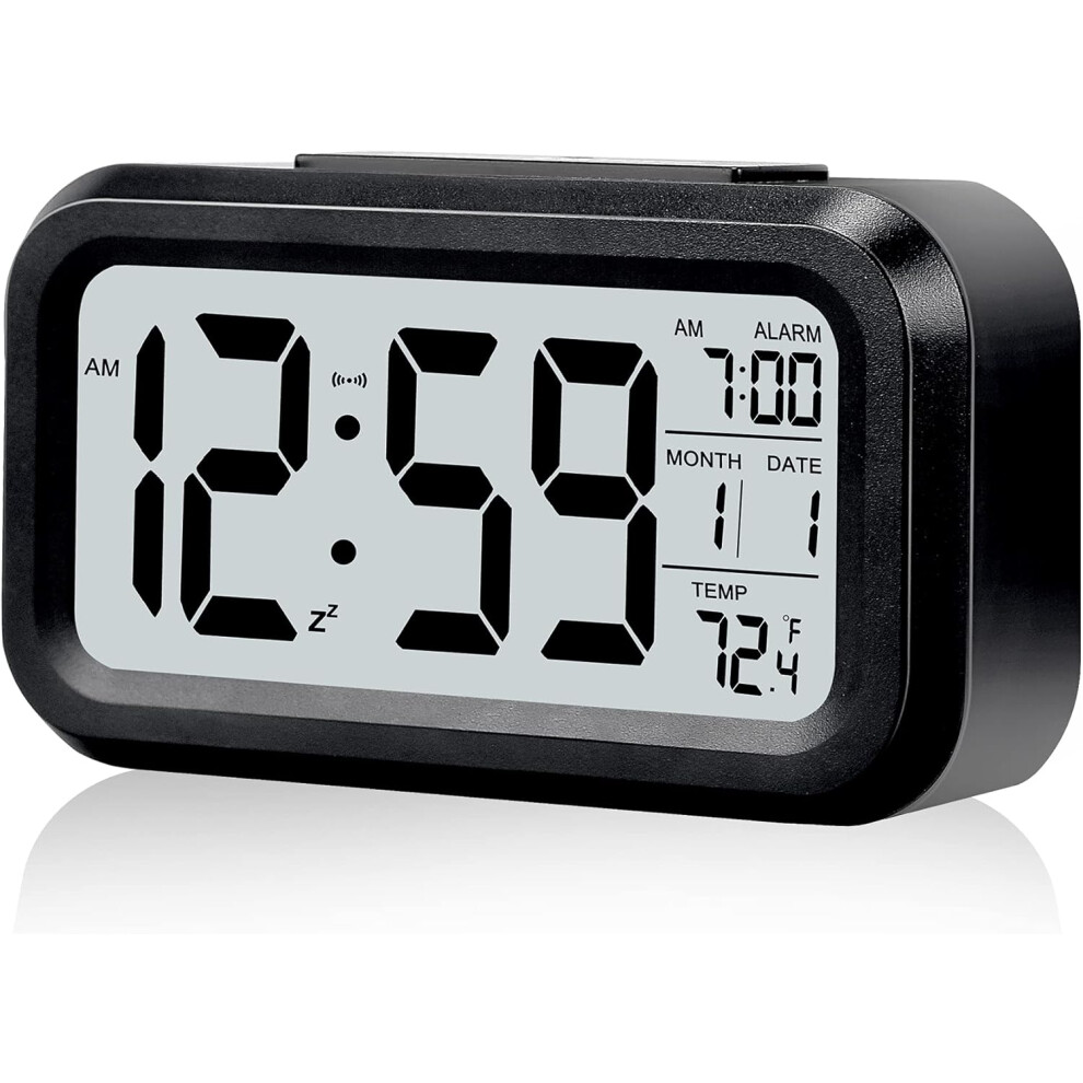 Smart Clock for Home Office, Battery Operated Digital Alarm Clock with Night Light Function for Heavy Sleepers, Indoor Temperature Display for Bedroom
