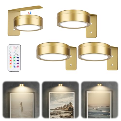 Ujjdwiurgh Battery Operated Dimmable LED Picture Lights Art Display Light 13 Lighting Modes for Paintings Spotlights Gold