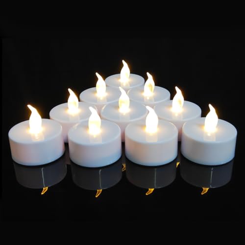 Jialine12 Pack Realistic and Bright Flickering Battery Operated Flameless LED Tea Lights Candles, 200+ tealights Electric Fake Candles for Halloween Weddings Festivals Decoration in Warm Yellow