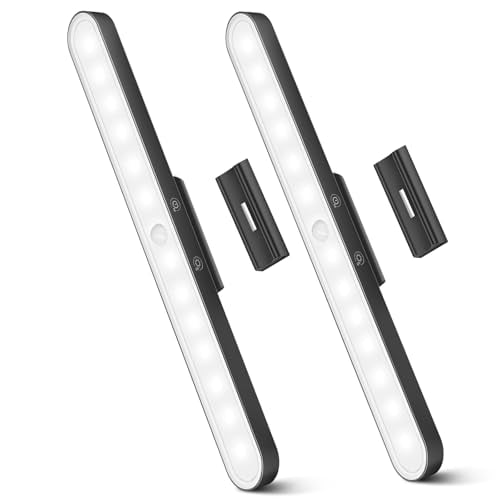 Under Cabinet Kitchen Lights, 6000K Dimmable Wireless Motion Sensor Wall Lights, USB-C 2500mAh Rechargeable Battery Operated LED Lights Indoor for Kitchen, Cupboard, Wardrobe, Stair and Mirror, 2 Pack