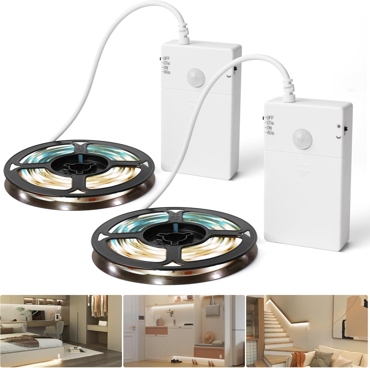 WOBANE Battery Operated 5m LED Strip Lights with 2 Motion Sensor,LED Wardrobe