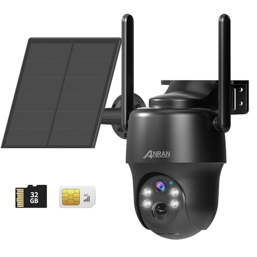 ANRAN 3/4G LTE 2K Security Camera Wireless Outdoor (SIM Card & 32GB SD Card Included), No WiFi Needed PTZ Solar Camera, Battery Operated, Color Night Vision, PIR Human Detection, 2 Way Talk, G1 Black