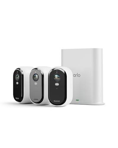 Arlo Essential 2 HD Video Security Camera Outdoor with SmartHub, Battery Operated Home Camera With Colour Night Vision, Light, Siren, 2 Way Audio & WiFi, Secure Free Trial, 3 Cameras, White