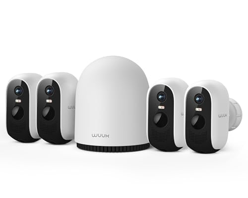 WUUK 2K Wireless Outdoor Security Camera, 32GB Local Storage Base Station, No Monthly Fee, Battery Operated Camera, Night Vision, Home Security Camera System, Compatible with Alexa & Google, 4-Cam Kit