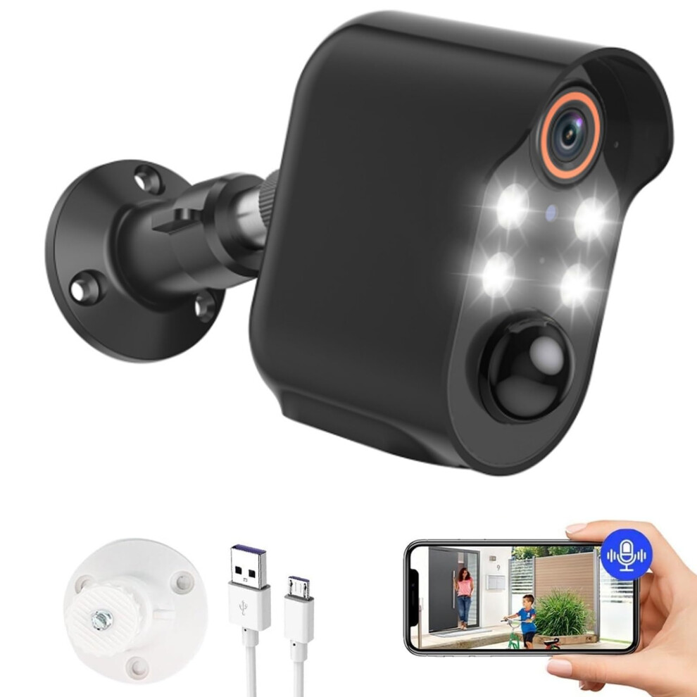 Security Camera 1080p Wireless Outdoor Surveillance Camera, Battery Operated with Motion Sensor for Home, Yard & Garage (Black)