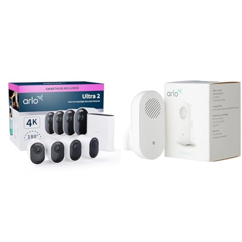 Arlo Ultra 2 Security Camera Outdoor, 4K 6-Month* Battery Operated Home CCTV Camera & Certified Accessories | Chime 2, Audible Alerts, Built-in Siren, Customisable Melody