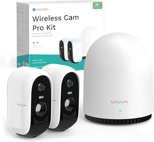 WUUK 2K Wireless Outdoor Security Camera, 32GB Local Storage Base Station, No Monthly Fee, Battery Operated Camera, Night Vision, Home Security Camera System, Compatible with Alexa & Google