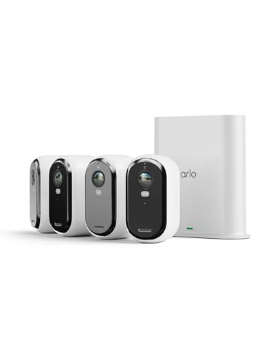 Arlo Essential 2 HD Video Security Camera Outdoor with SmartHub, Battery Operated Home Camera With Colour Night Vision, Light, Siren, 2 Way Audio & WiFi, Secure Free Trial, 4 Cameras, White
