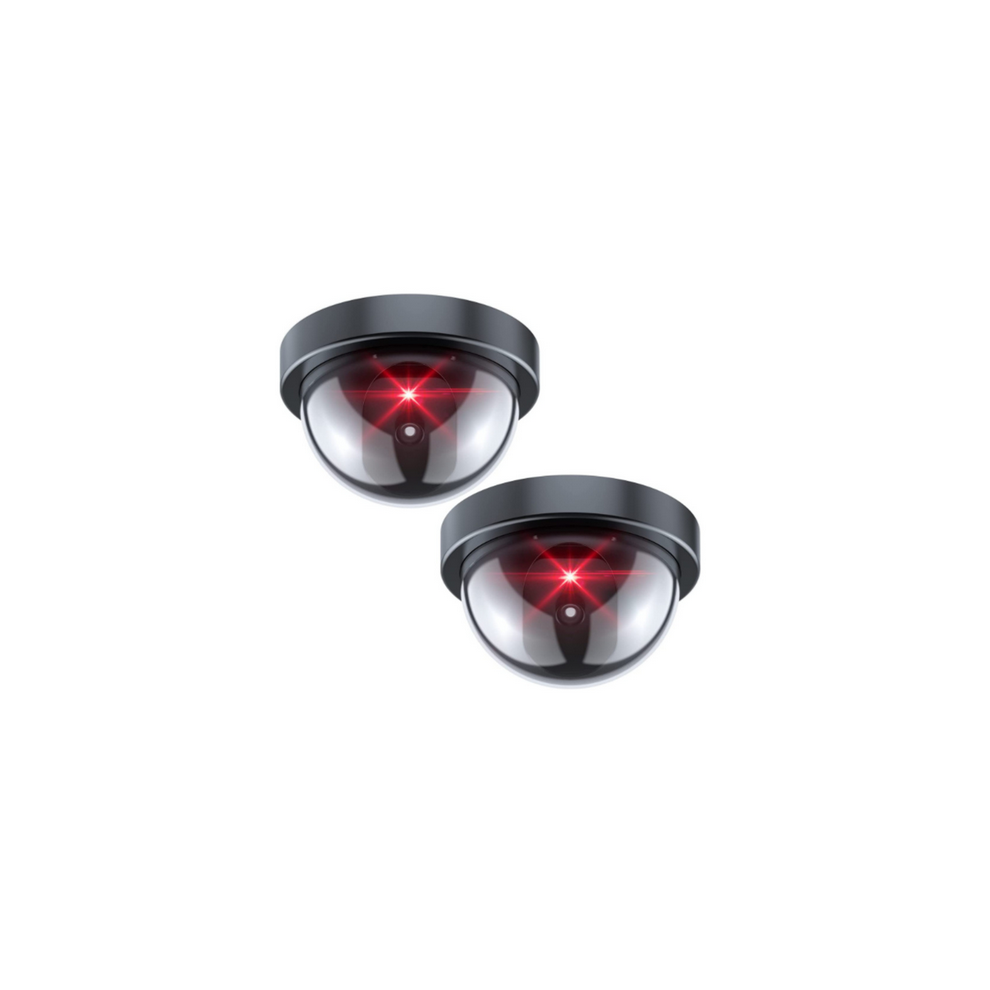 Flashing Red Led Light, Security CCTV Dome Camera with Easy Installation, Simulation Camera for Indoor Outdoor Usage (Battery Operated, 2 Packs)