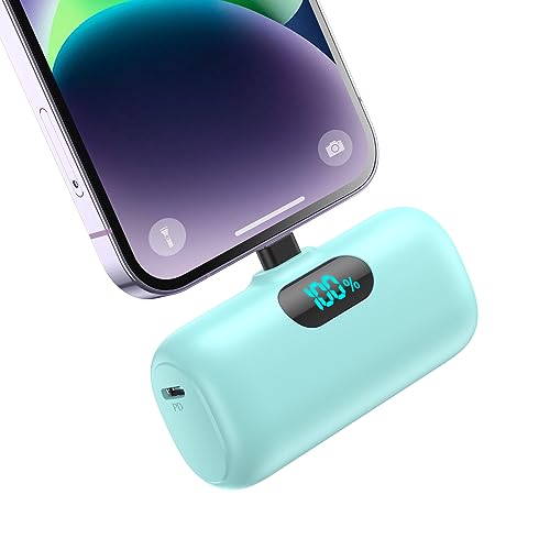 Feob 5000mAh Mini Power Bank for iPhone, Upgraded 15W PD Fast Charging Portable Charger, LCD Display 3.0A Small Battery Pack Compatible with iPhone 14/14 Pro Max/13/13 Pro Max/12/11/XR/X, etc -Green