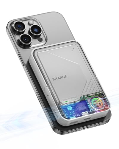 SHARGE ICEMAG 2 MagSafe Power Bank, 15W Qi2 Magnetic Charger with Active Cooling, 10000mAh StandBy MagSafe Battery Pack Transparent for iPhone 17/16/15/14 Series, Galaxy Pixel