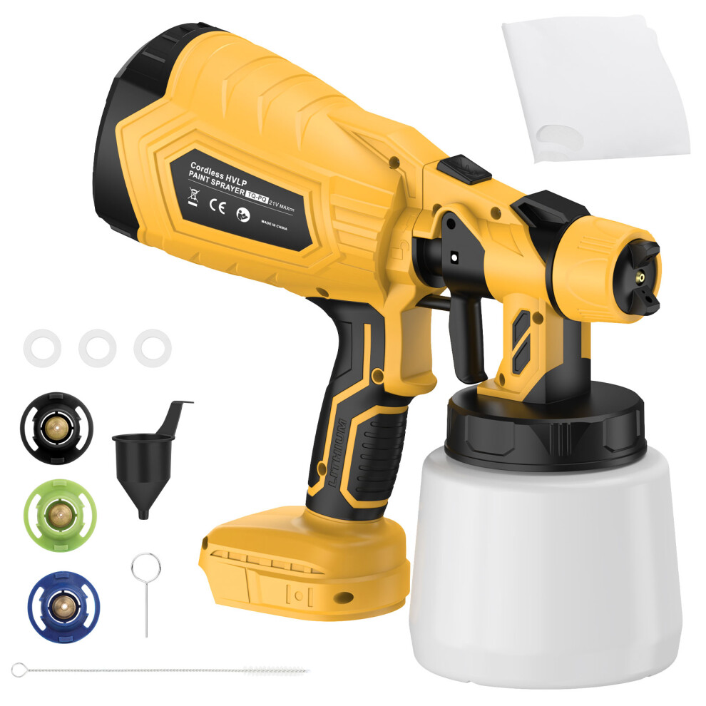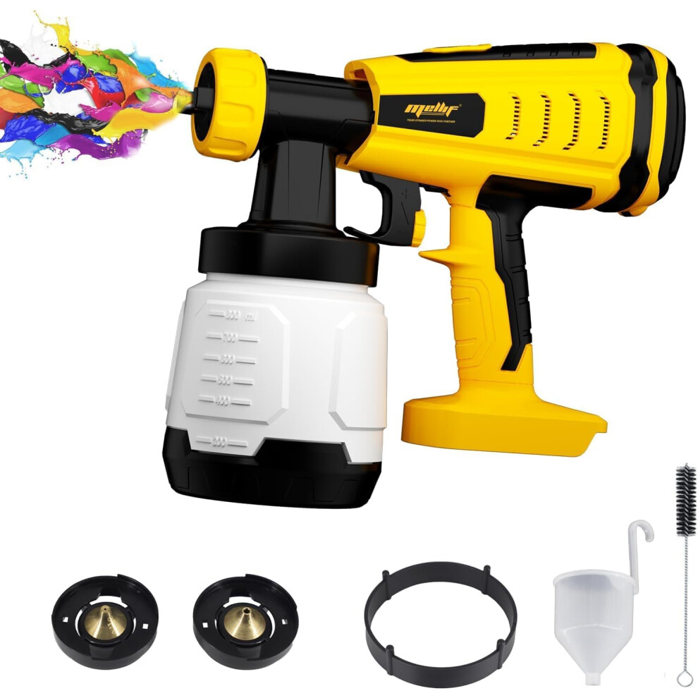 (Yellow) Mellif Cordless Paint Sprayer for Dewalt 20V Max Battery,Wireless Electric Paint Spray Gun With 800Ml Tank,3 Sized Spray Nozzles 3 Patterns