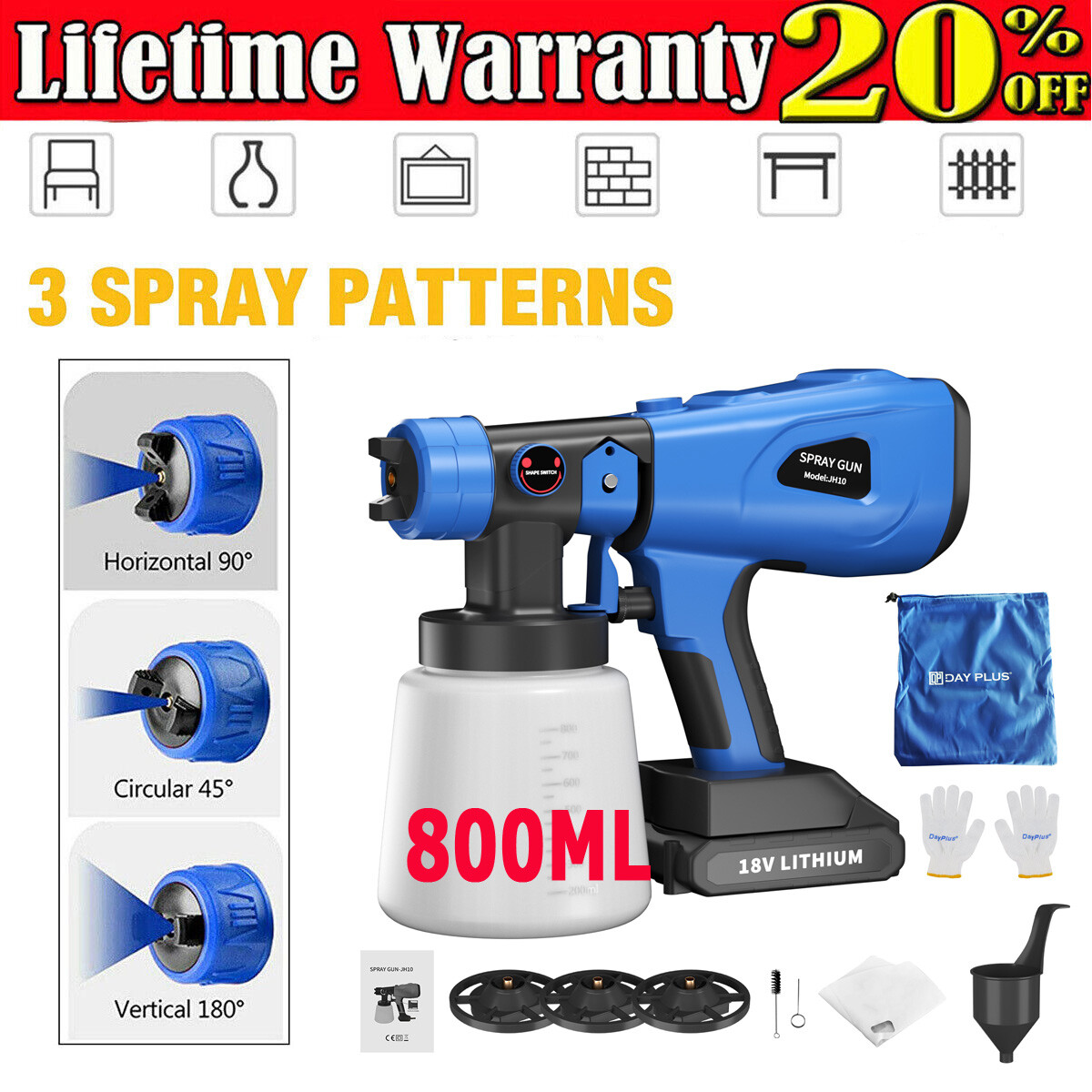 Cordless Electric Paint Spray Gun Portable Sprayer +Battery 18V & Charger 800ML