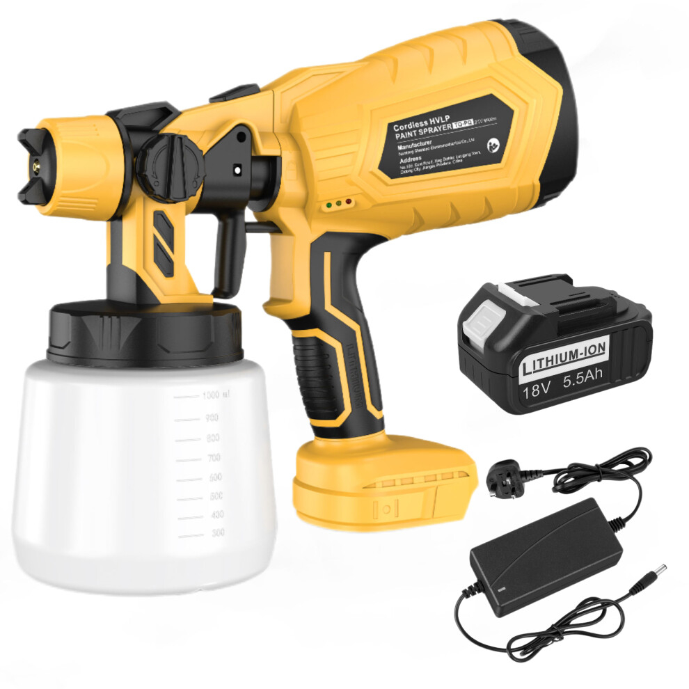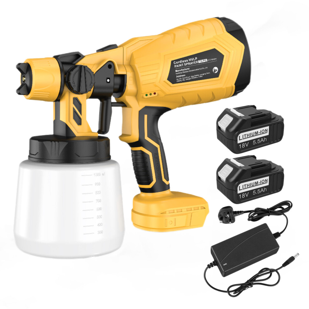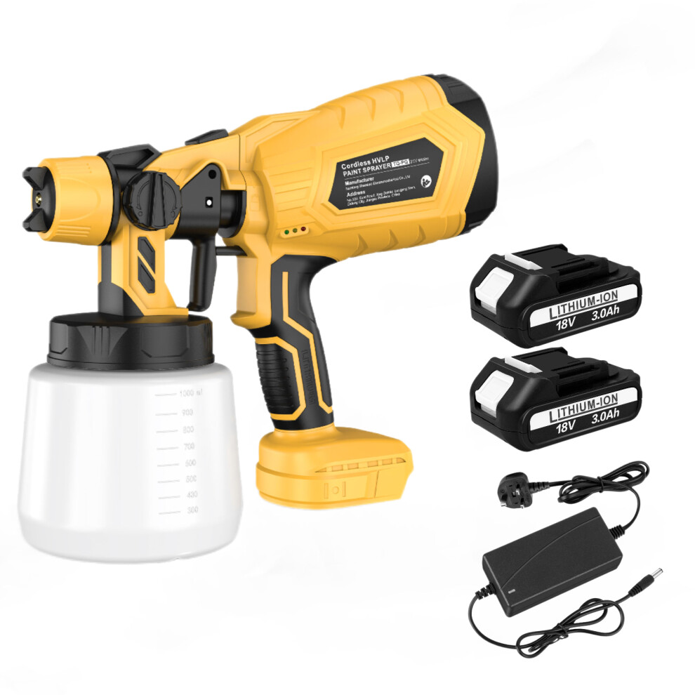 2 Battery Cordless Paint-Sprayer-Spray Gun Airless Home/Outdoor Wall Fence For Makita 18V HVLP 1000ML
