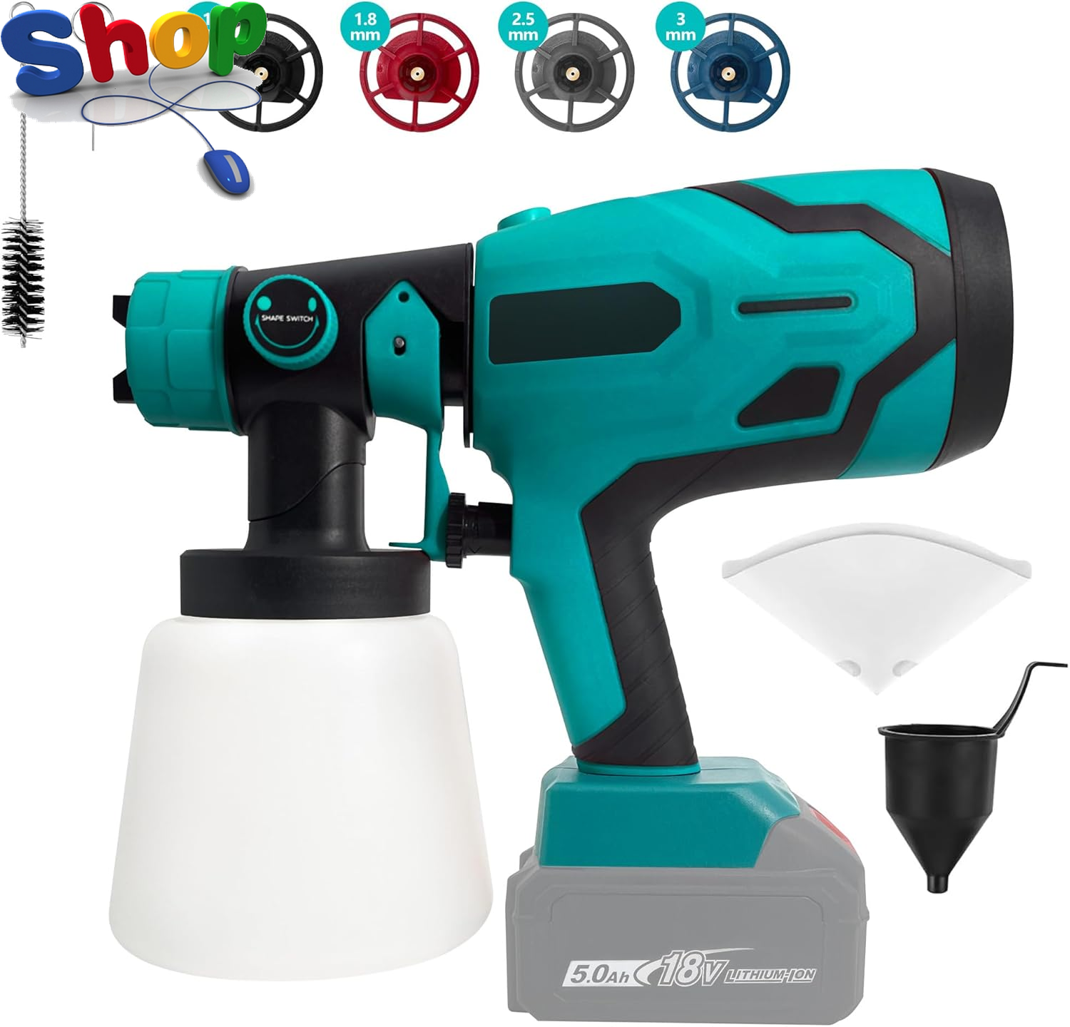 ((With battery )set) Cordless Paint Sprayer 1000ML for Makita battery, Brushless Paint Gun with 1000ml High Capacity & 3 Nozzles, HVLP High Pressure P