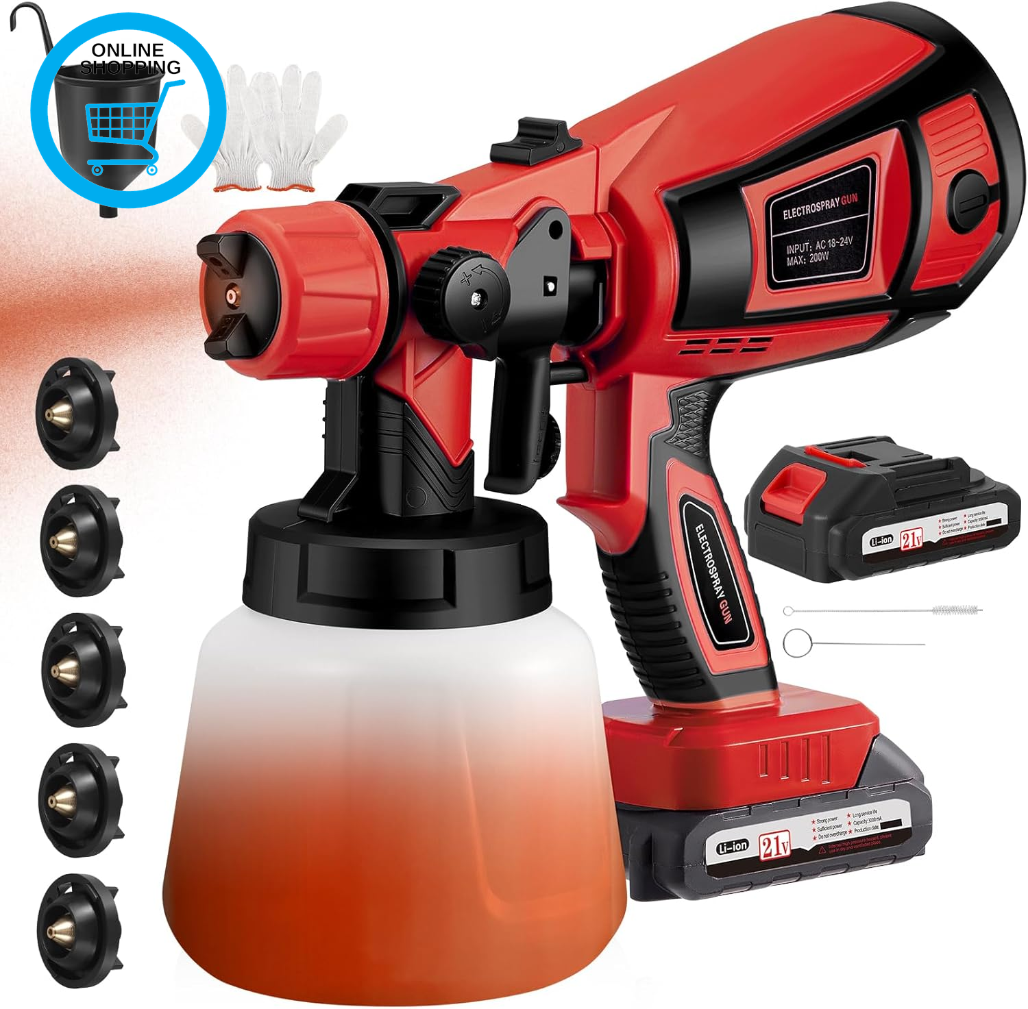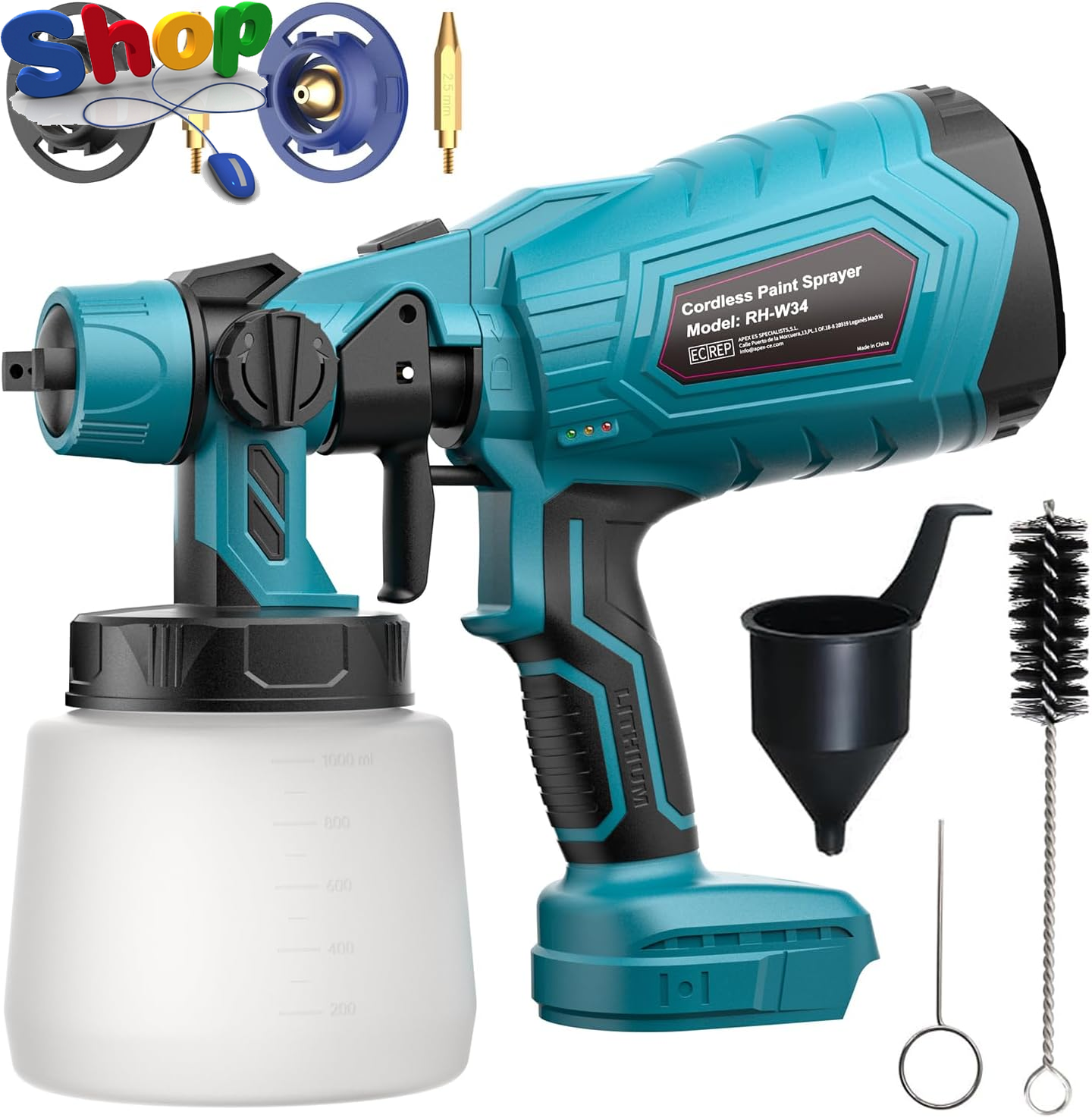 (upgraded machine?with 2 Battery?) Cordless Paint Sprayer 1000ML for Makita battery, Brushless Paint Gun with 1000ml High Capacity & 3 Nozzles, HVLP H