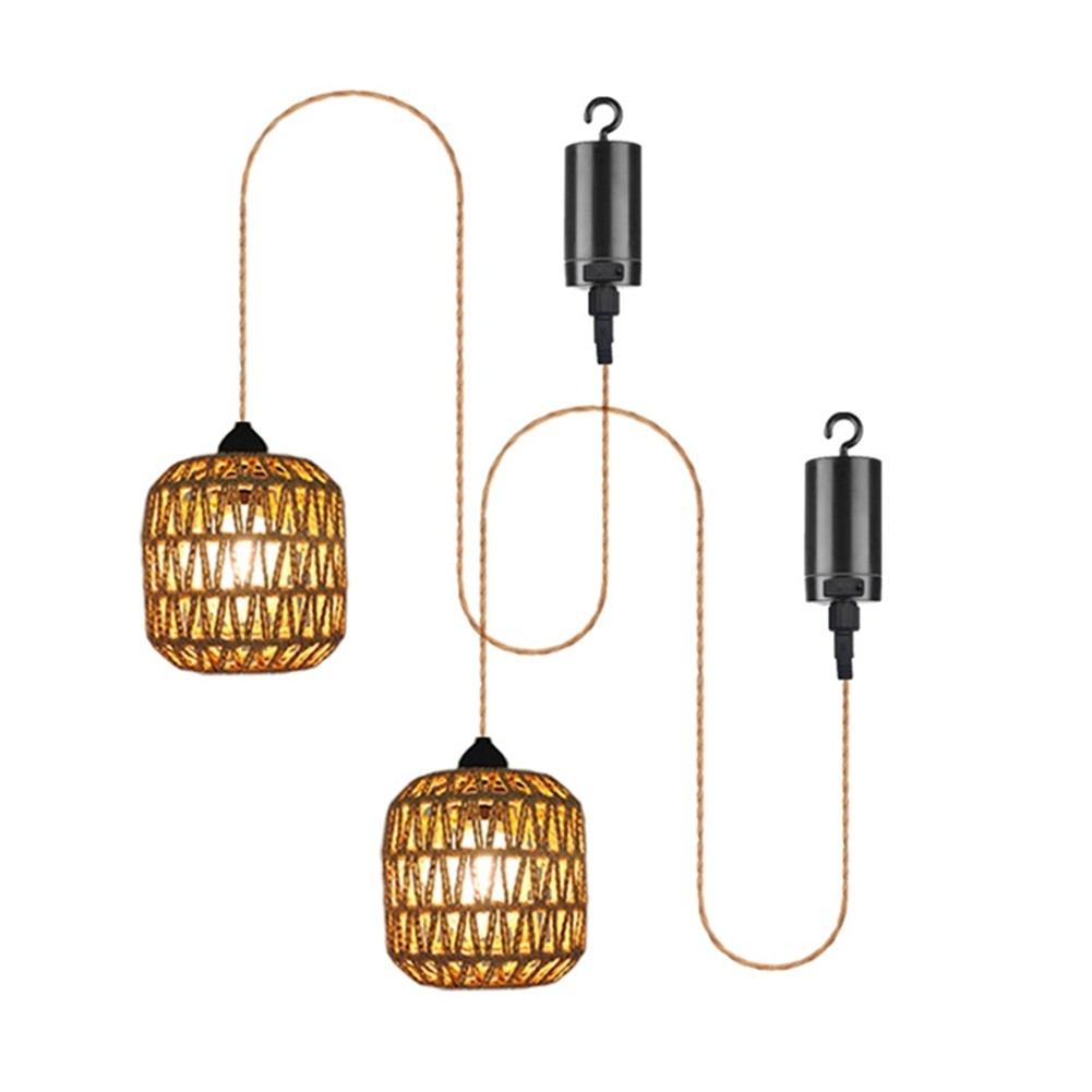 2pcs Battery Pendant Light Woven Rattan Pendant Light for Gazebo, Pergola,9589