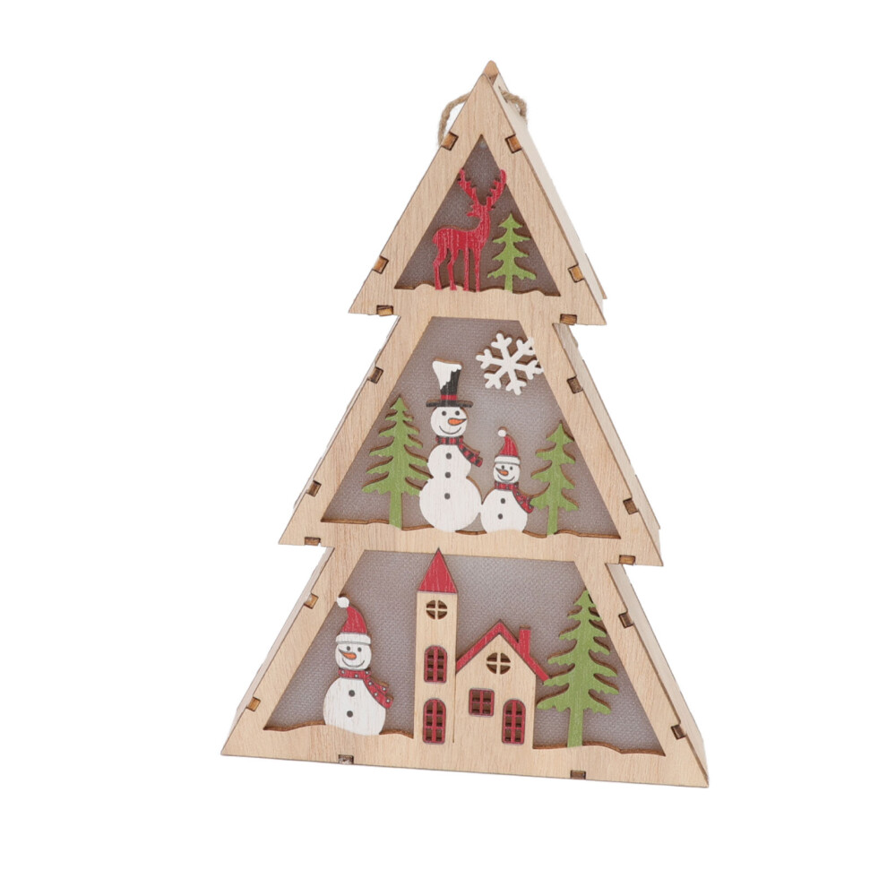 Wooden Christmas Tree Pendant Battery Powerd Lightweight Light Hanging Ornament for Home Shopwindow