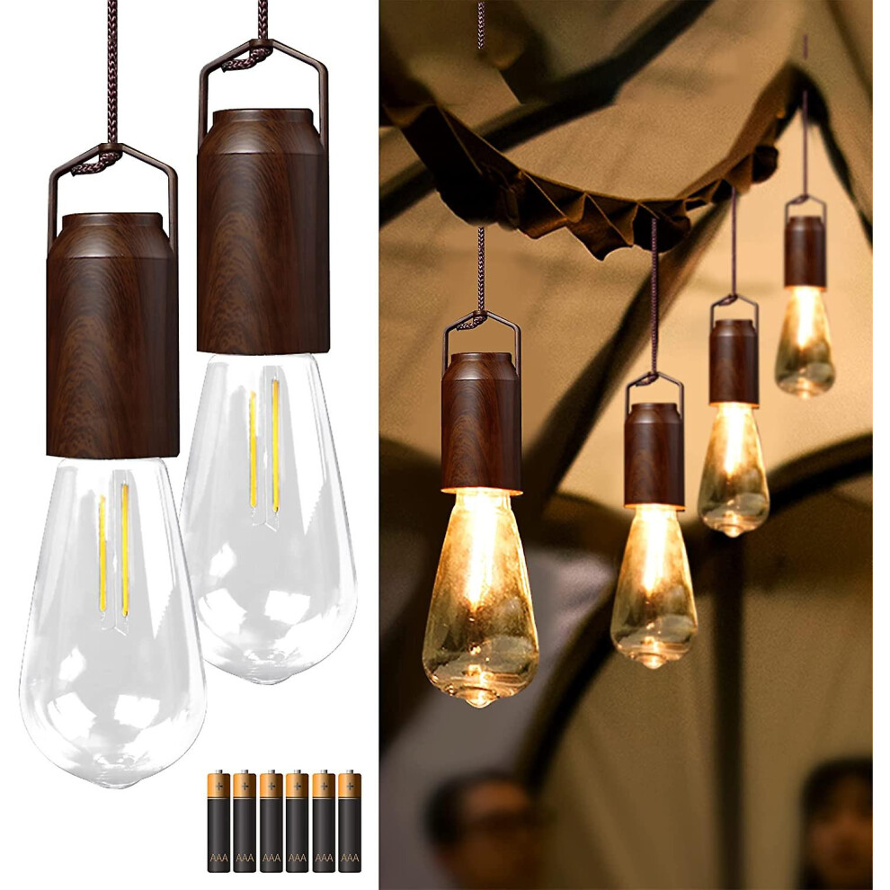 Mkk 2 Pack Battery Powered Tent Light Bulb,portable Outdoor Hanging Vintage Led Camping Light,hurricane Pendant Emergency Lighting Lantern For Hiking
