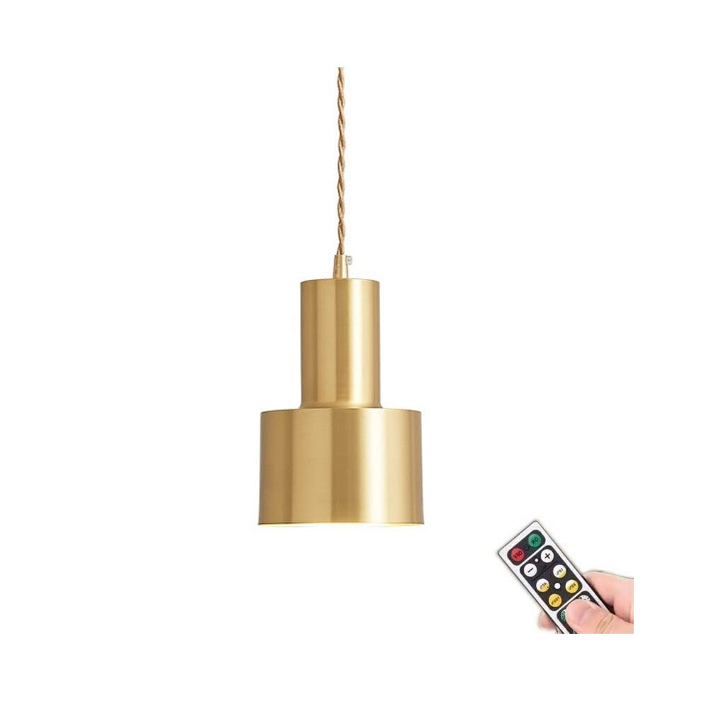 Battery Powered Pendant Light Gold with Remote, Non Hardwired LED Hanging Fixture for Kitchen Island
