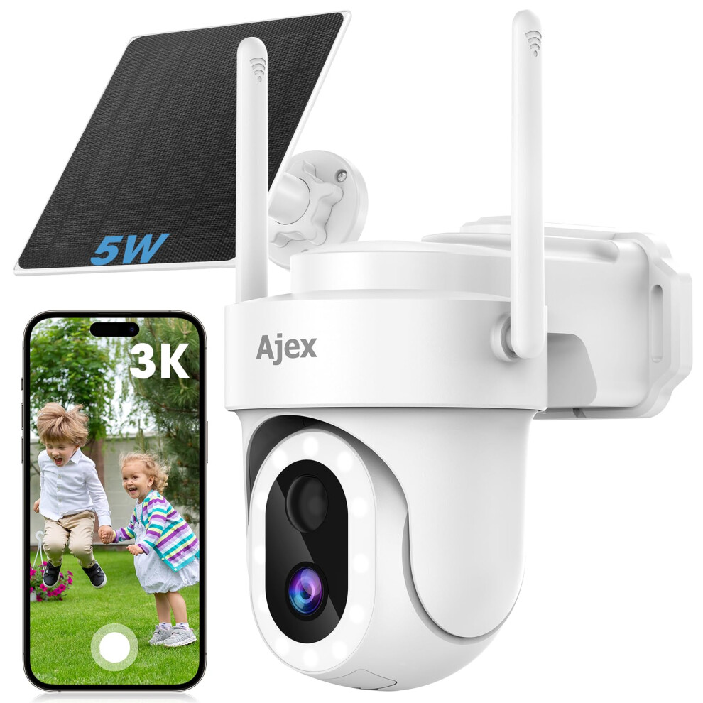 Ajex 3K/5MP Solar Security Camera Outdoor Wireless with 5w Solar Panel, 360 Solar Battery Powered, 2.4G Wifi CCTV Camera Outdoor, Color Night Vision