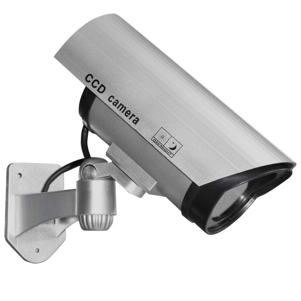 JUSTOP Dummy CCTV Camera Outdoor/Indoor, Fake Security Cam Waterproof With Reality LED Light Solar Or Battery Powered - Silver