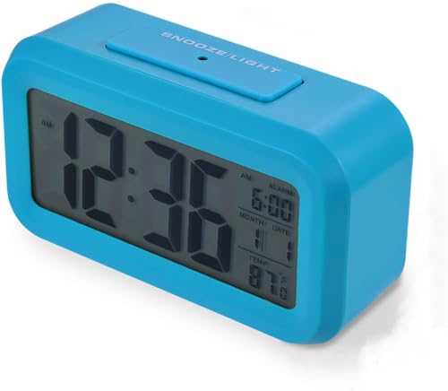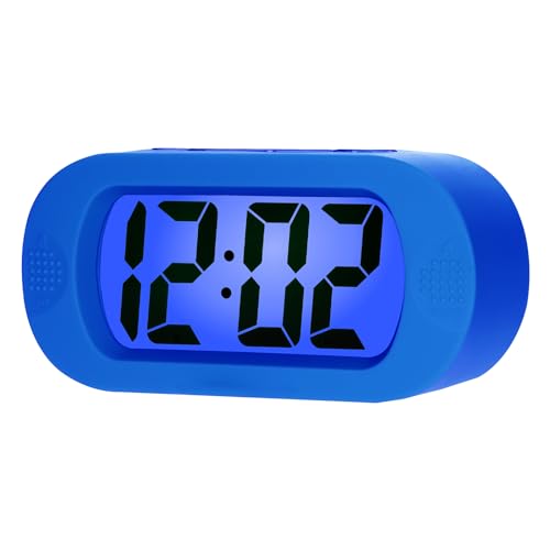 Plumeet Digital Alarm Clock Travel Clock with Snooze and Nightlight - Easy to Set Simple Bedside Alarm Clocks for Kids - Ascending Sound - Battery Powered (Blue)