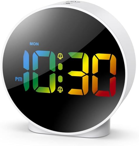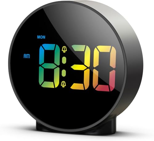 OQIMAX Newest Digital Alarm Clock, Alarm Clocks Bedside with Colorful Curved LED Display, Battery/USB Powered Digital Clock with Snooze, 4-Level Brightness, 2 Alarms, 12/24Hr for Heavy Sleepers Kids