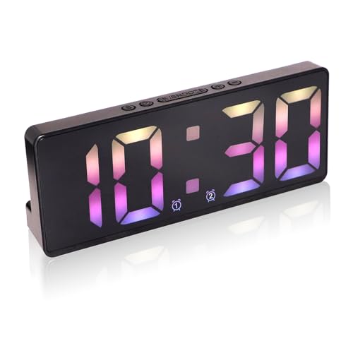 Lafocuse LED Digital Alarm Clock Bedside with 6.7" Large Display, Snooze, Type-C/Battery Powered, Adjustable Brightness, Date, Temperature, Table Clock for Heavy Sleepers Bedroom Office, Colourful