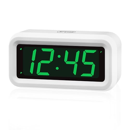 Plumeet Digital Alarm Clock Travel Clock with Snooze and Nightlight - Easy to Set Simple Bedside Alarm Clocks for Kids - Ascending Sound - Battery Powered (White)