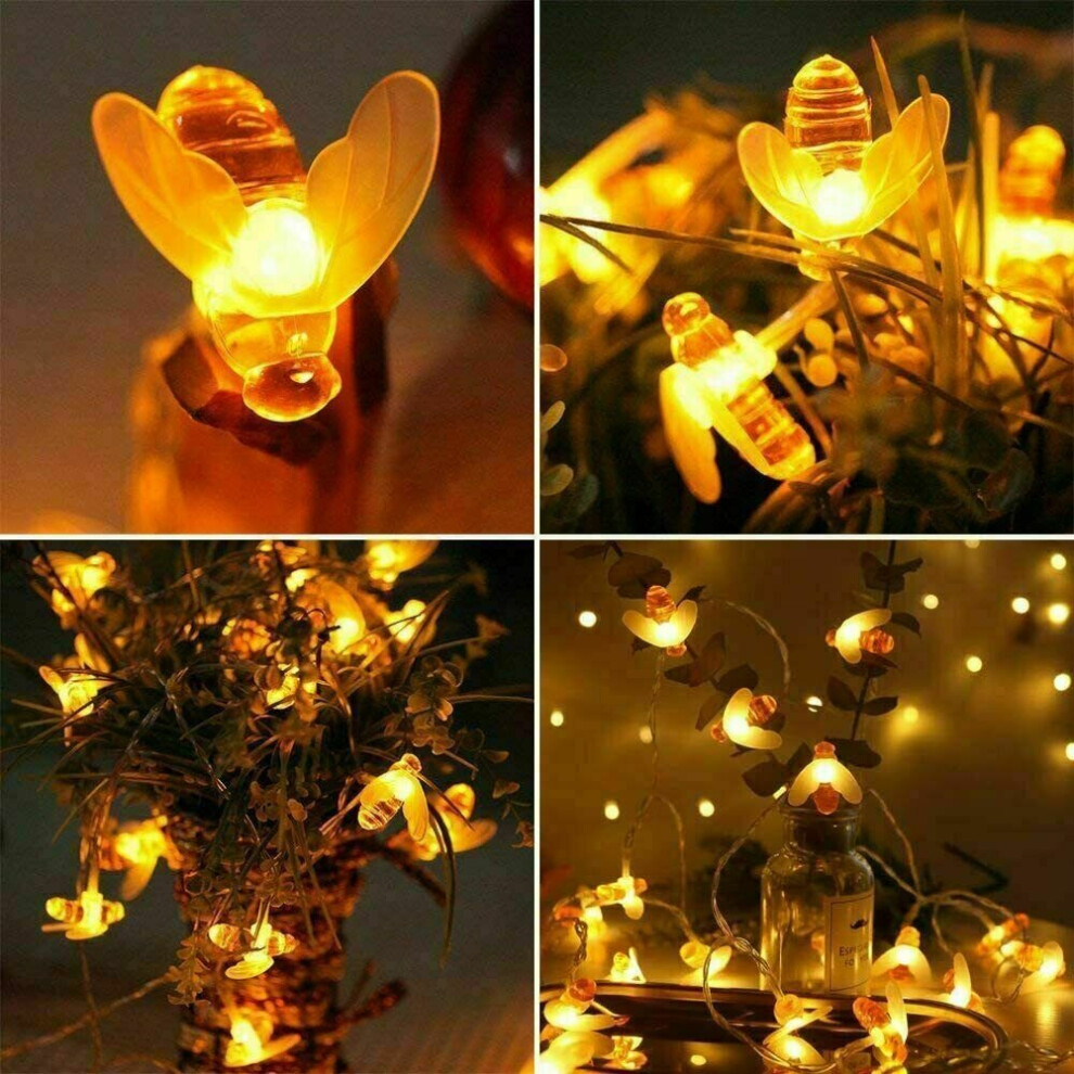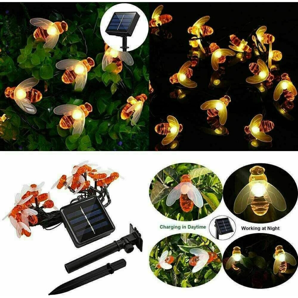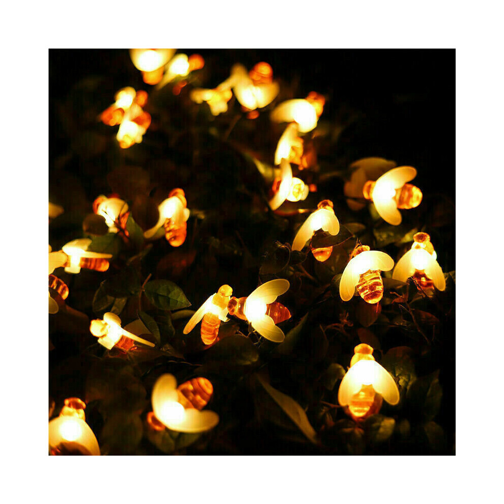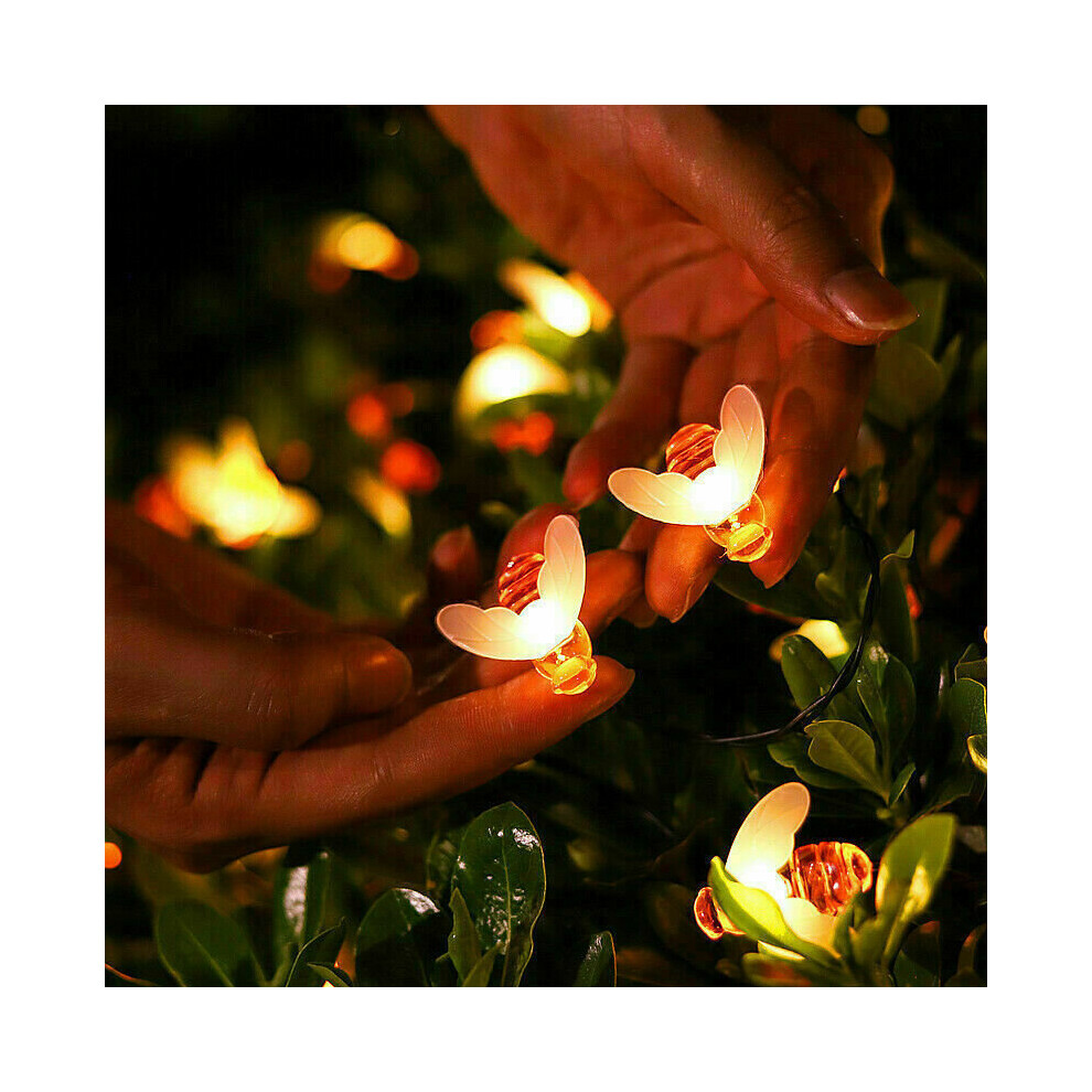 (5M 20LEDs Solar Powered) 1.5M-12M Solar Battery Powered LED Sting Fairy Lights Garden Decor Cute Honey Bee