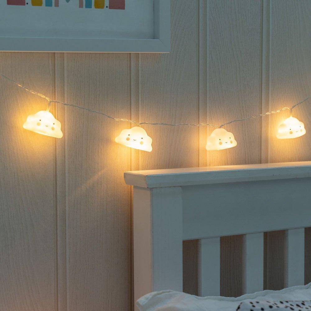 ValueLights Set of 10 Battery Powered Cloud Fairy String Lights in White