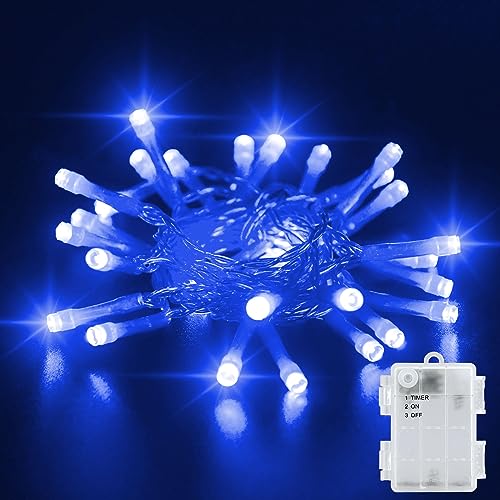 Dalugo Blue Battery Fairy Lights, 3M 30 LED Blue String Lights with 6h Timer, IP65 Waterproof Battery Powered Fairy Lights for Indoor Outdoor Christmas Decorations