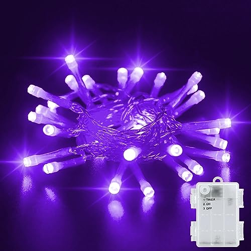 Dalugo Purple Battery Fairy Lights, 3M 30 LED Purple String Lights with 6h Timer, IP65 Waterproof Battery Powered Fairy Lights for Indoor Outdoor Christmas Decorations