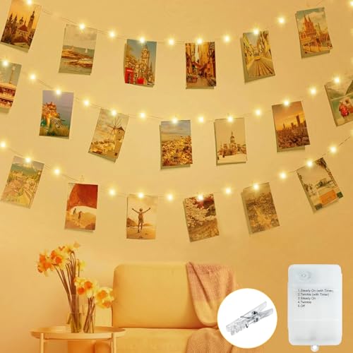ZAIYW 50 LED Photo Clip String Lights, 5M Photo Peg Fairy Lights with Auto Timer 8 Modes, Battery Powered Fairy Lights Copper Wire with 30 Clips for Bedroom Birthday Wedding Party Christmas Decor