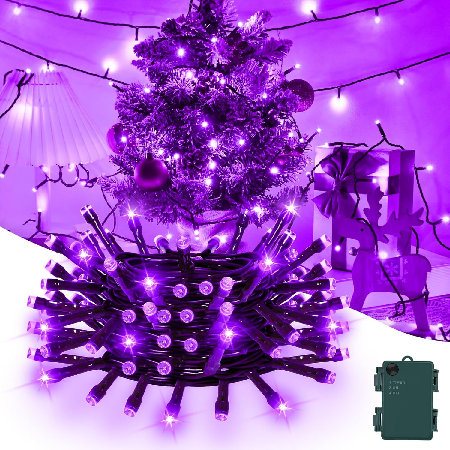 Gcstnn Battery Fairy Lights, 3M/9.8Ft 30LED Battery Powered Fairy Lights Indoor Outdoor with 6h Timer Waterproof String Lights On Green Cable,for Bedroom Christmas Tree Decorations,Garden-Purple