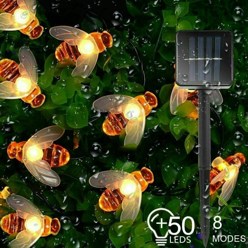 (7M 50LEDs Solar Powered) 1.5M-12M Solar Battery Powered LED Sting Fairy Lights Garden Decor Cute Honey Bee