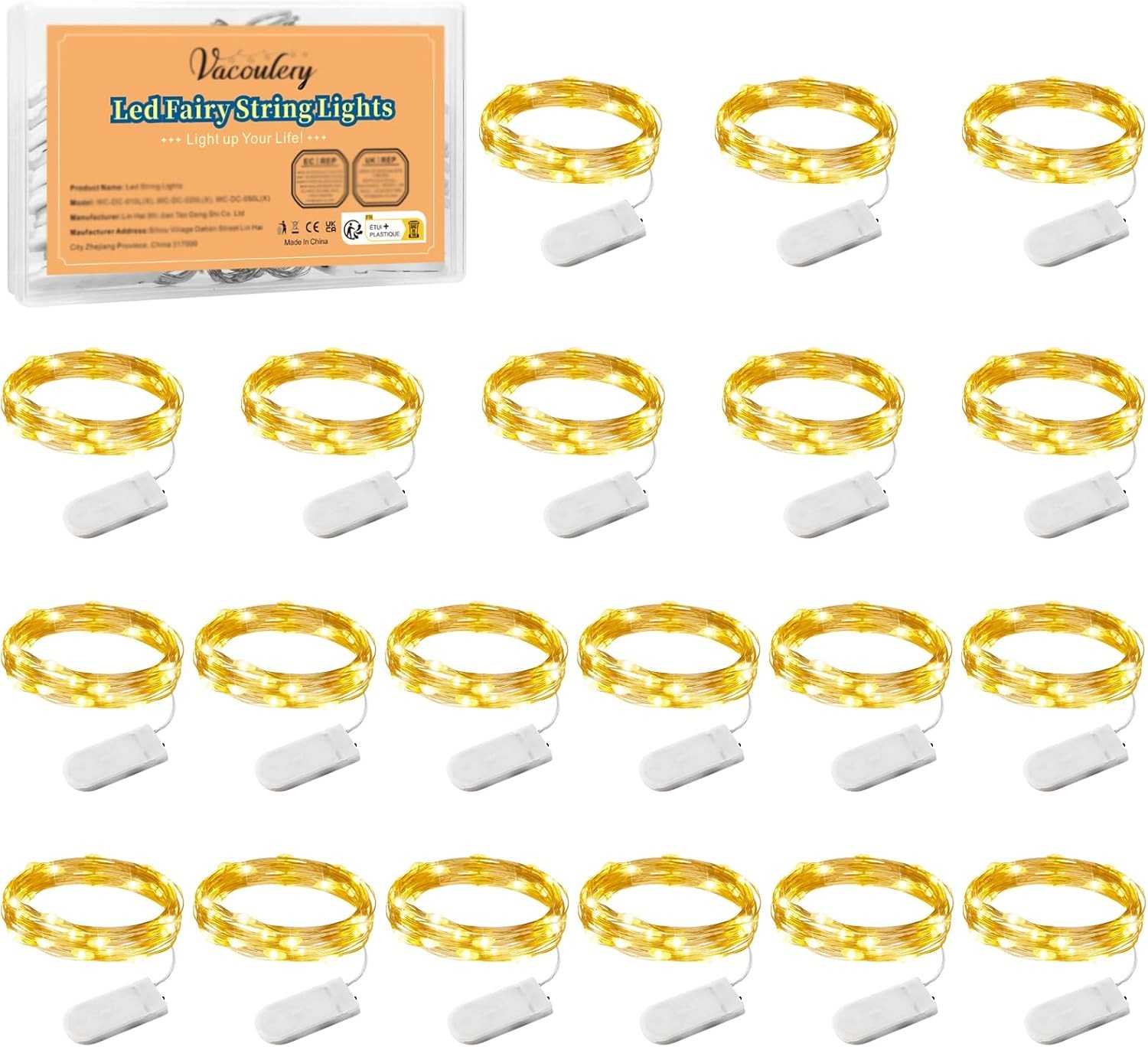 Vacoulery Micro Led String Lights Battery Powered, 20pack Fairy Lights 1M 10 ...
