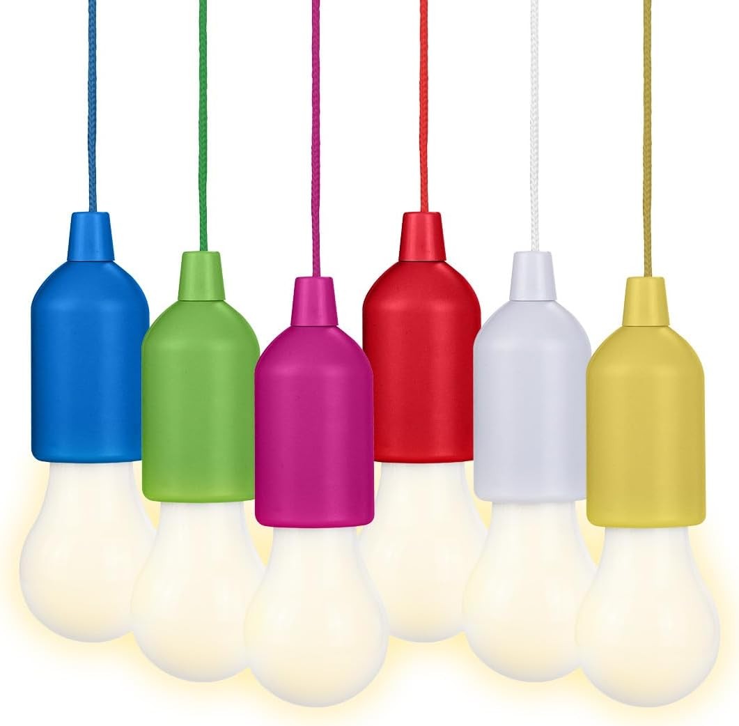 LED Pull Cord Hanging Lights Portable Light Garages Sheds Tents Battery Powered