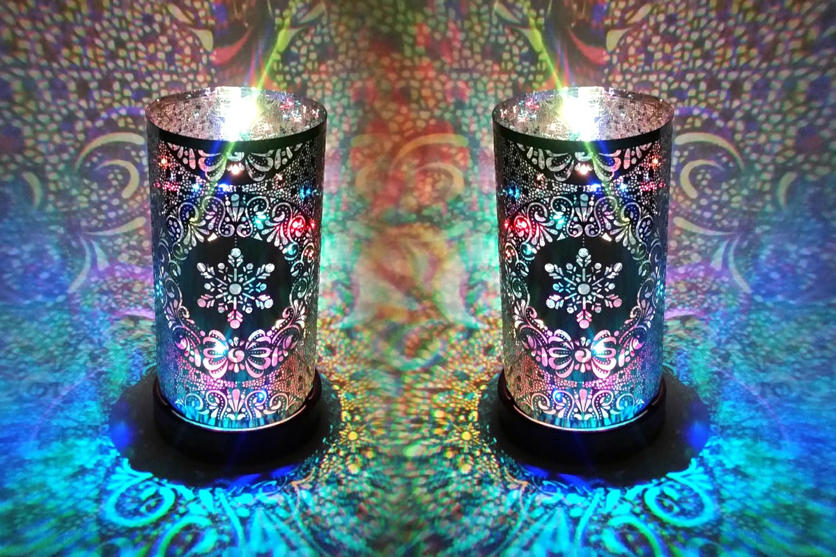 2pc Luxa Fantasia Glass Twinkler Projector Lamps Battery Powered Cordless Lights