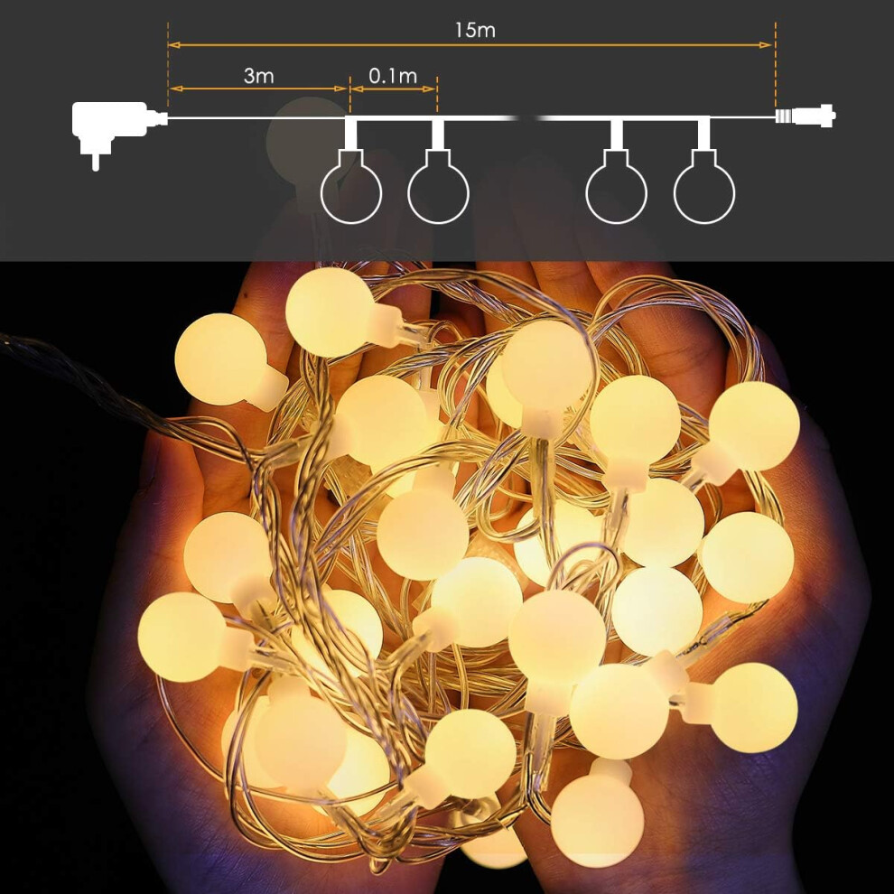 8 Modes LED Globe String Lights 33 FT 100 LED Warm White Battery Powered Waterproof Outdoor String Lights with Remote Control Timer Function for Garde