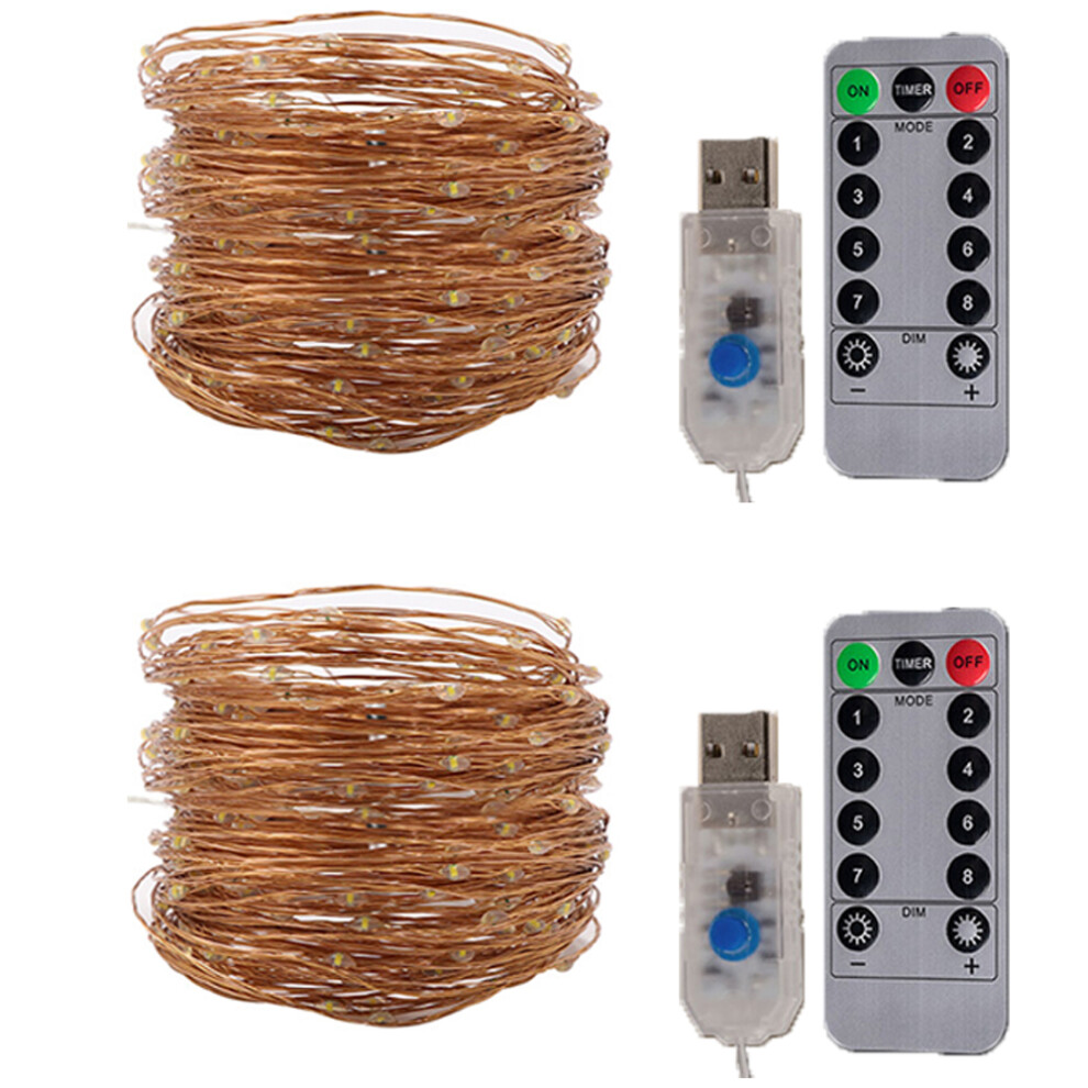 KooPower 2 Pack Garden Fairy Lights Battery Powered Outdoor Lights IP65 Waterproof 100 LED Copper Wire String Lights with Timer Function for Christmas